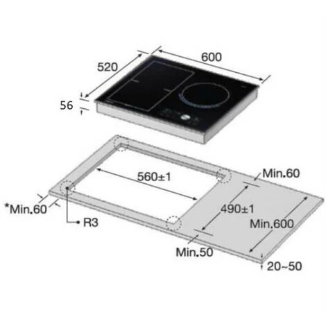 Dimensions Encastrement (LxHxP) : 56 x 5,6 x 49 cm.